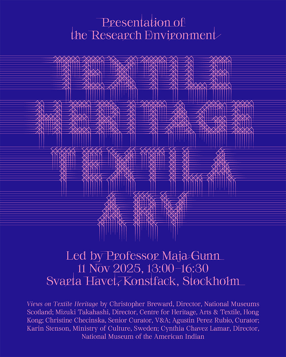 Varmt välkomna till introduktion och presentation av forskningsmiljön Textila arv.