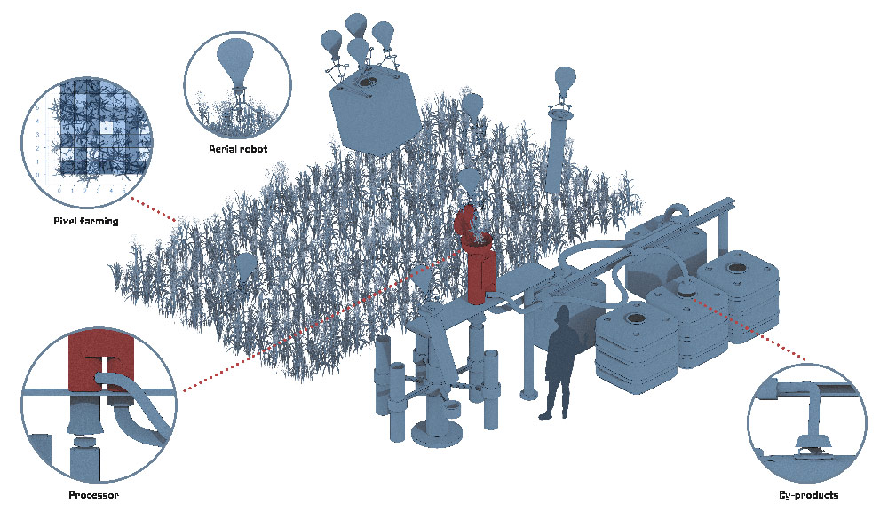 Ludvig Karlssons illustration av framtidens matförsörjning.