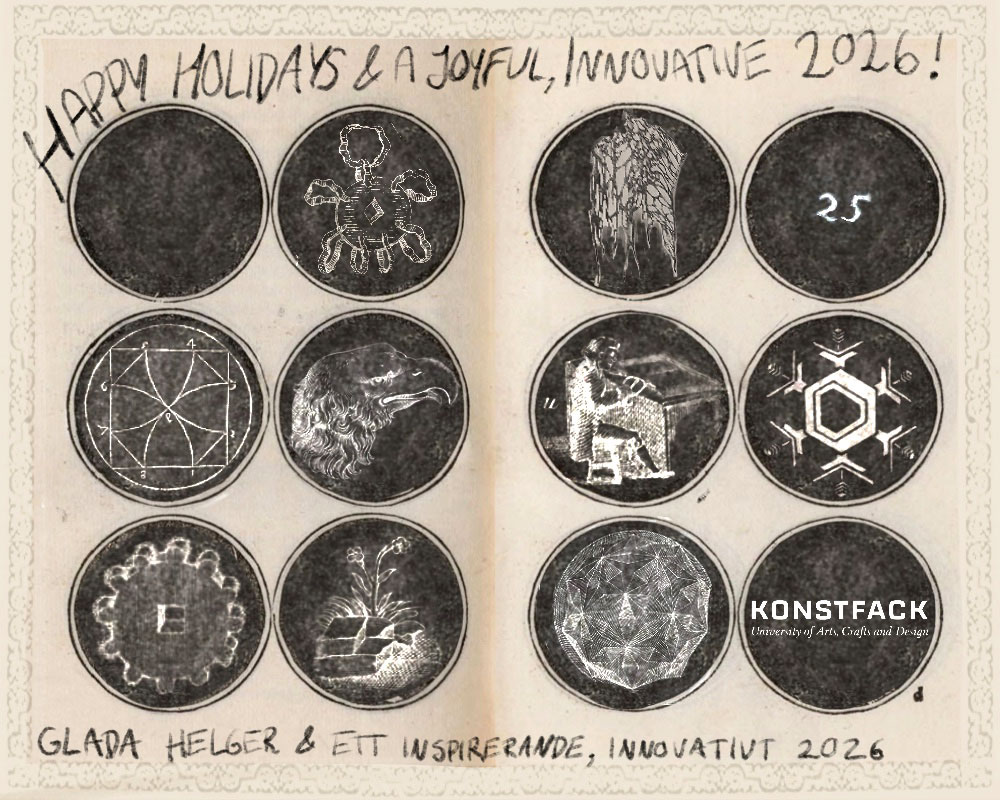 Med inspiration från både privata och offentliga arkiv har Sara Melin på masterprogrammet i konst år 2, vunnit Konstfacks julkortstävling 2025.