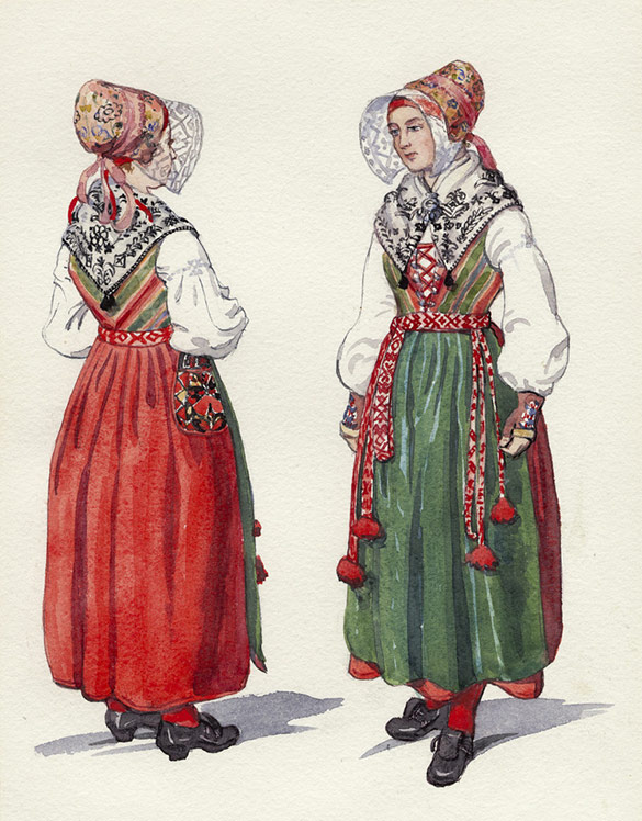 Anna Lindkvist Adolfsson, adjunkt på Konstfack, medverkar i Sveriges Radio om den allt populärare folkdräkten: "Det beror både på otrygghet och att det har varit en Tiktok-trend att intresset och priserna ökar".